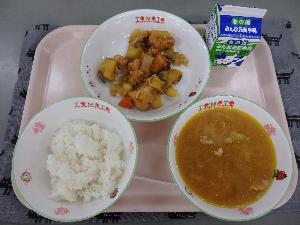 9月29日(月曜日)【ご飯 牛乳 鶏肉とさつま芋の旨煮 こしね汁】
